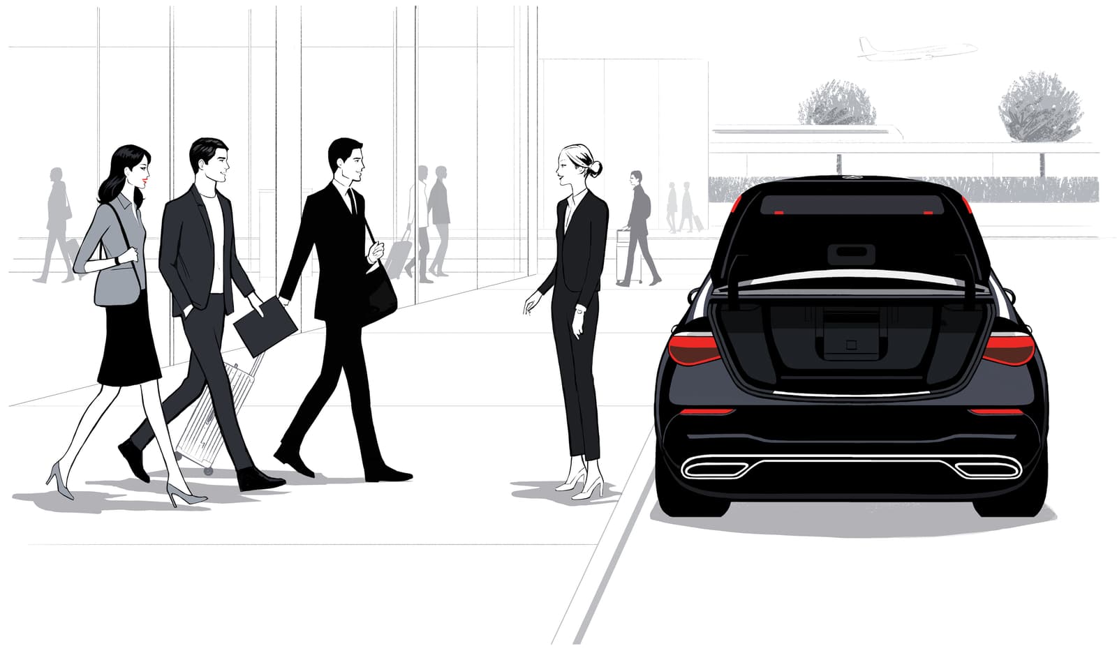 Dès l'arrivée à l'aéroport, notre agent dédié accueille chaleureusement les passagers à leur véhicule et les assiste à chaque étape, de l'enregistrement à la porte d'embarquement, pour un passage aéroportuaire serein et sans pression.